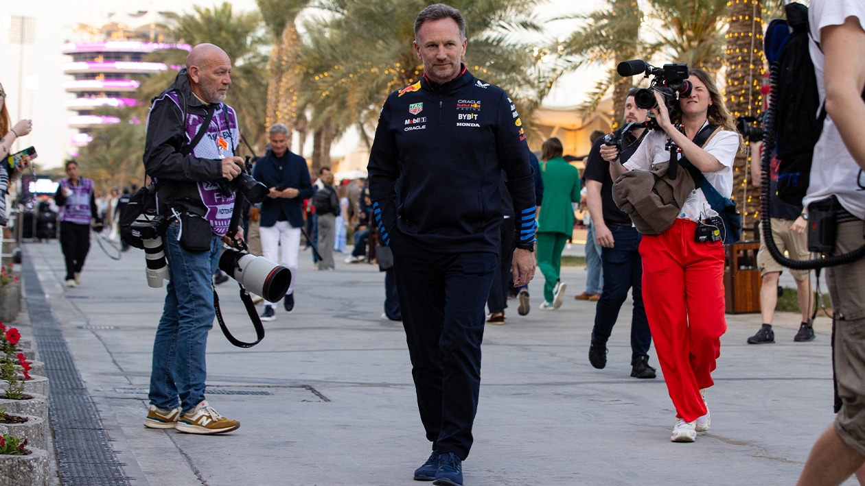 On Saturday, the camera lenses were all fixated on the paddock entrance throughout the day, and it was within two hours of the start of the race that Horner and his wife Geri walked through the gates hand-in-hand in a show of unity, sending people scampering to get a photo. Horner had actually been on-site much longer but had stayed within the confines of the team’s building, then snuck out of a gate behind hospitality to meet his wife and return.