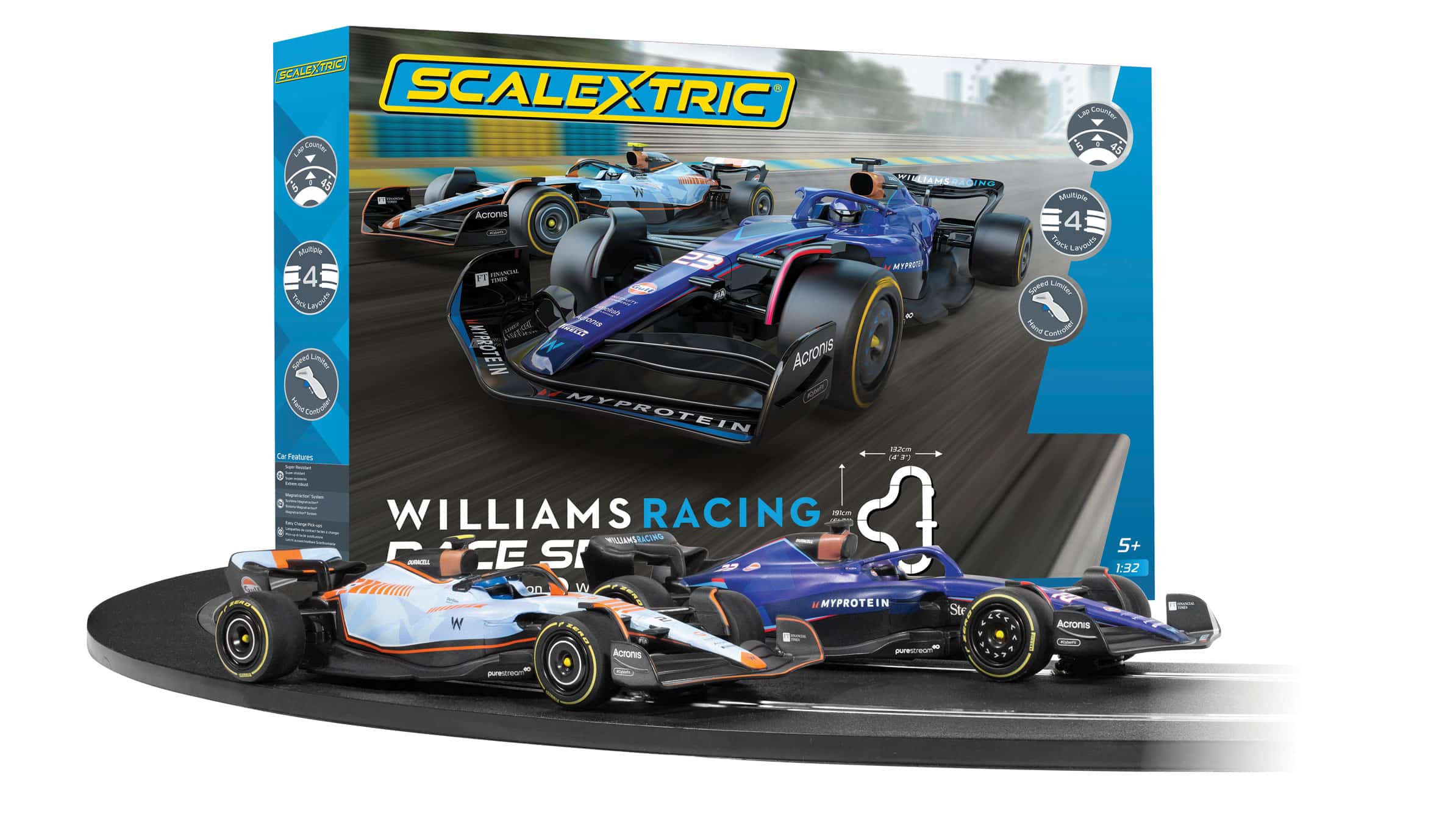 Along with the Williams cars, the new set includes a 10-piece track (four layout options), two hand controllers, transformer, powerbase, lap counter, track supports and a spare braid pack, and is priced at £139.99.