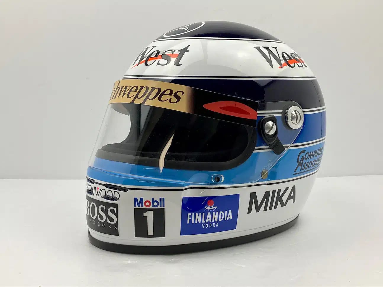 The only driver Michael Schumacher ever feared, this stunning Mika Hakkinen full size display helmet is a perfect replica of the one the Flying Finn used to win eight races and the 1998 Formula 1 World Championship. For fans of McLaren memorabilia and Mika Hakkinen collectibles, this is the perfect addition to your collection.