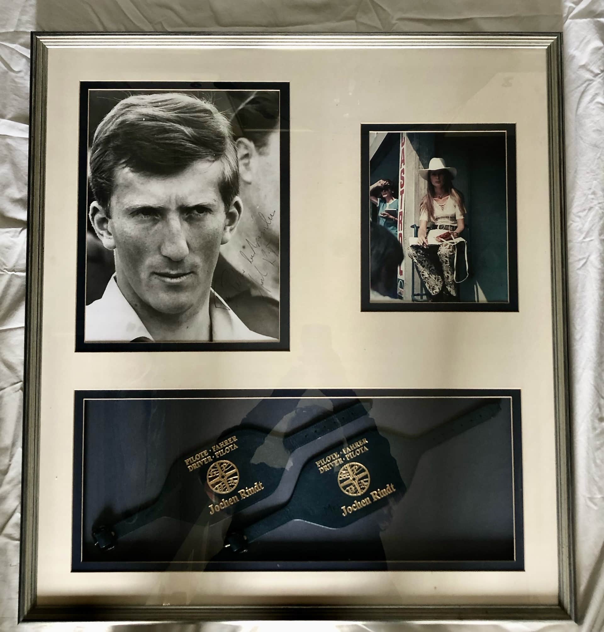 Vintage Signed Framed Jochen Rindt Lotus Photo & Armbands 1970